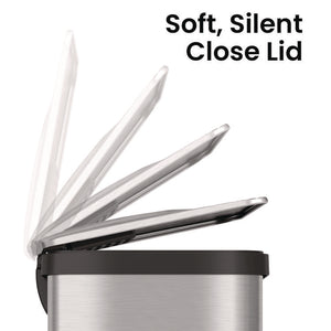 Elevate your waste management with our step pedal trash can featuring AirStep technology, designed for smooth pedal operation and a quiet, gentle lid close. Ideal for hospitality, medical, multi-family residential, and retail environments, this bin ensures a soft and silent lid close with every use. It includes an odor filter to keep the surrounding area fresh and clean, while the durable stainless steel construction adds a sleek touch. A carry handle provides easy mobility, and the slim, space-saving design integrates seamlessly into any setting.