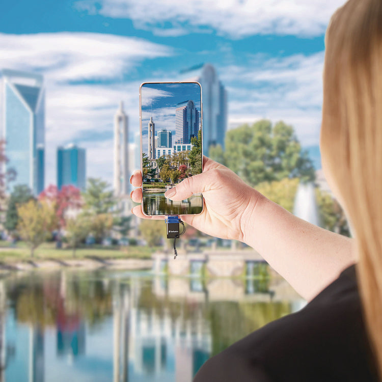 Verbatim's Store n' Go Dual USB Drive for USB-C Devices allows you to transfer files simply and quickly between USB-A and USB-C devices, such as smartphones, laptops, or other devices. Delivering dependable storage with two different USB connector types, dual USB drives simplify file transferring between devices. Free up storage space on your mobile devices by directly saving your documents and media files to a dual USB drive. With plug-and-play functionality, easily backup your files across multiple devices and quickly share with peers.