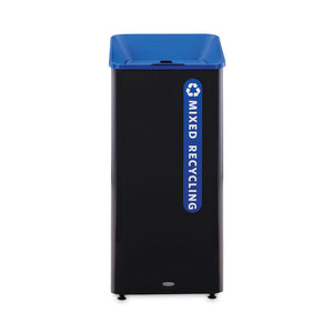 Sustain Decorative Refuse with Recycling Lid, 23 gal, Metal/Plastic, Black/Blue