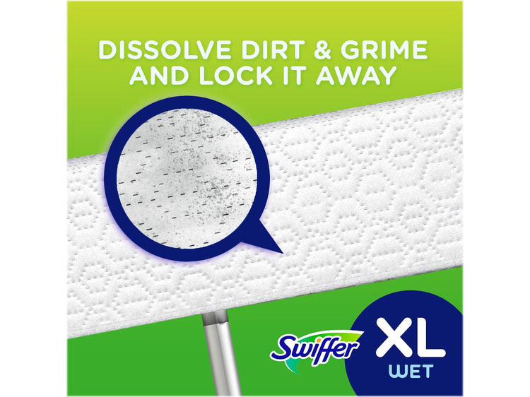 - TRAP + LOCK XL dry sweeping cloths clean dirt, dust, and hair, while the XL wet mopping cloths dissolve dirt and grime and lock it away
