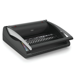 Completely redesigned for maximum speed and operational ease. Green to go paper alignment indicator ensures accurate punching. Document size guide quickly measures document to determine spine size. Also features a staging area to prep projects which enhance workflow and productivity. Includes quick step user guide for simple and intuitive operation.