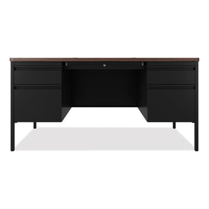 Teachers Pedestal Desks, Left and Right-Hand Pedestals: Box/File Drawer Format, 60" x 30" x 29.5", Walnut/Black