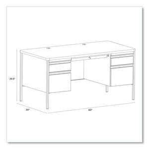 For commercial-grade desks designed specifically with the modern classroom in mind, choose Hirsh Industries® Teachers Pedestal Desks. As they're uniquely tailored to educational environments, professors, teachers, guidance counselors and administrators can all reap benefits. Each desk's easy to clean, laminated worksurface features rounded corners and a protective T-mold strip. Color-matched, heavy-gauge steel pedestals, legs and privacy panels attractively offset the worksurface while ensuring sturdy performance. All drawers employ a full-extension, precision ball-bearing suspension system to allow each drawer to open and close both fully and smoothly. The pencil drawer's centralized core-removable locking system helps keep desk contents secure while allowing for all-keyed-alike convenience (keyed-alike option is limited to Hirsh Industries® components). Leveling glides accommodate uneven flooring. Legs ship unattachedminimal assembly required.