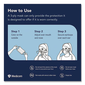 Three-Ply Disposable Face Mask, Paper, One Size Fits Most, 50/Box