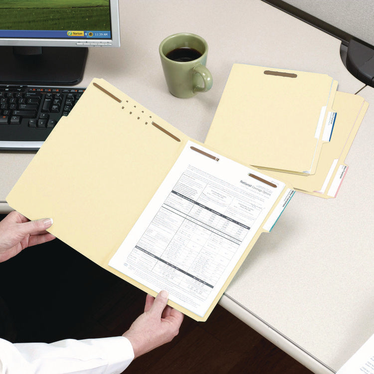 Top Tab Fastener Folders, 1/3-Cut Tabs: Assorted, 0.75" Expansion, 2 Fasteners, Legal Size, Manila Exterior, 50/Box