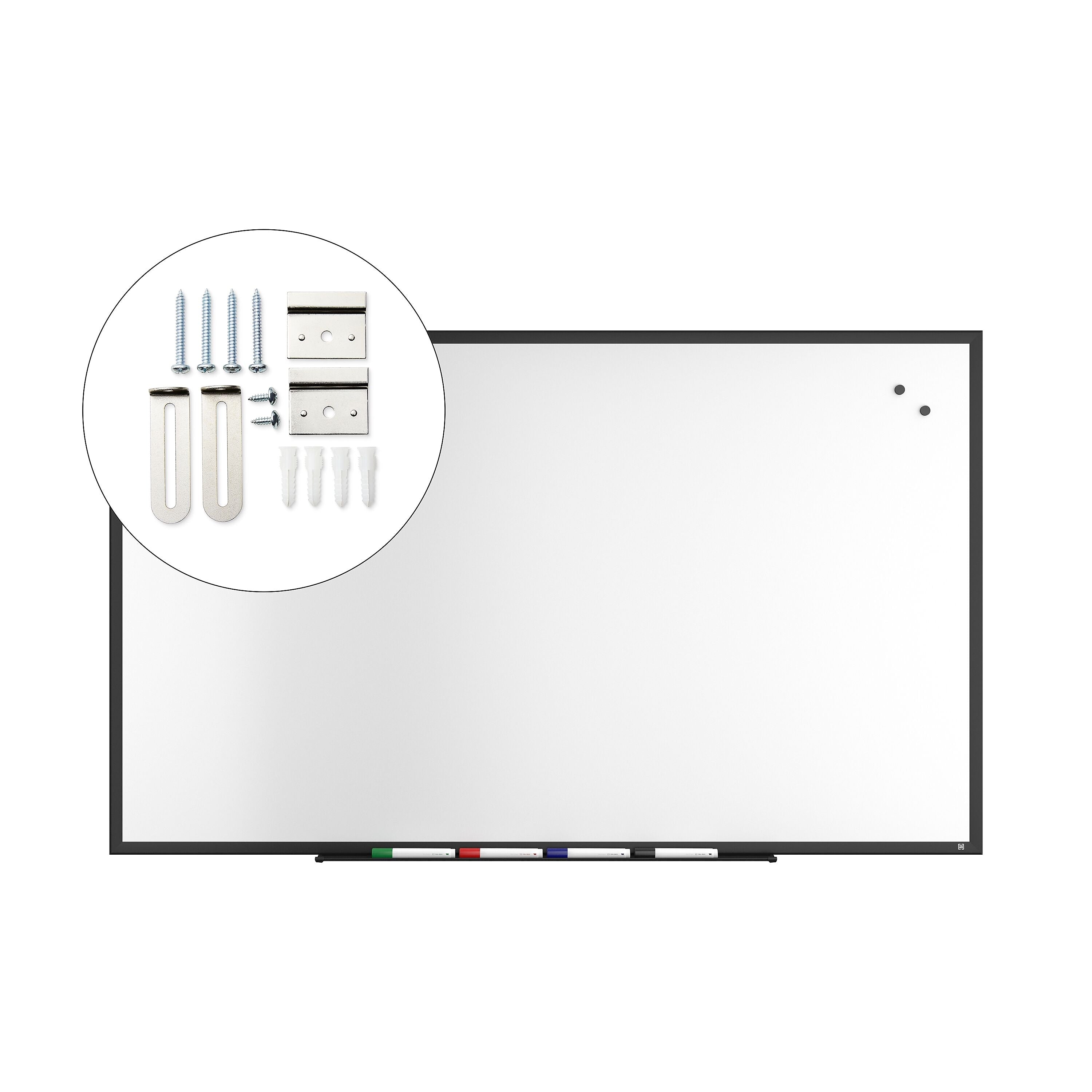 - Includes whiteboard, mounting kit, accessory tray, and 4/pack of TRU RED™ assorted chisel tip dry erase markers