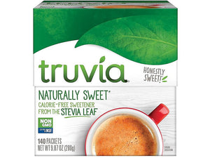 Add extra sweetness to foods and drinks without adding extra calories when you use these natural sweetener packets. The portion-controlled packets let you select just the right amount, and the delicious flavor comes from stevia leaves for a natural way to prepare coffee or tea. These Truvia packets come in a 140-count package, providing a smart option for coffee stations, break rooms and other shared spaces.