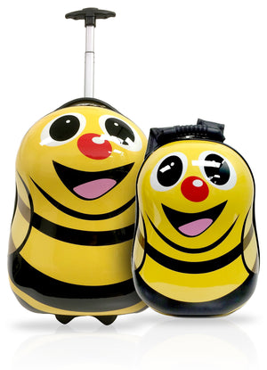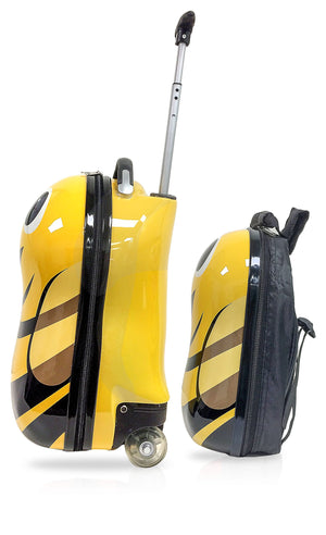 The Tucci BusyBee 2-Piece Kids Luggage Set in Yellow (T0380) is designed to bring a buzz of excitement to your child's travels. Featuring a cheerful bee theme in a bright yellow color, this set adds a playful touch to every adventure. It includes a rolling carry-on suitcase and a matching backpack, both made from lightweight yet durable materials for long-lasting use. The carry-on features 360-degree spinner wheels and a kid-friendly telescoping handle, making it easy for little ones to maneuver. The matching backpack has adjustable straps for a comfortable fit. With spacious compartments for packing essentials, the Tucci BusyBee set is perfect for fun, organized travels!