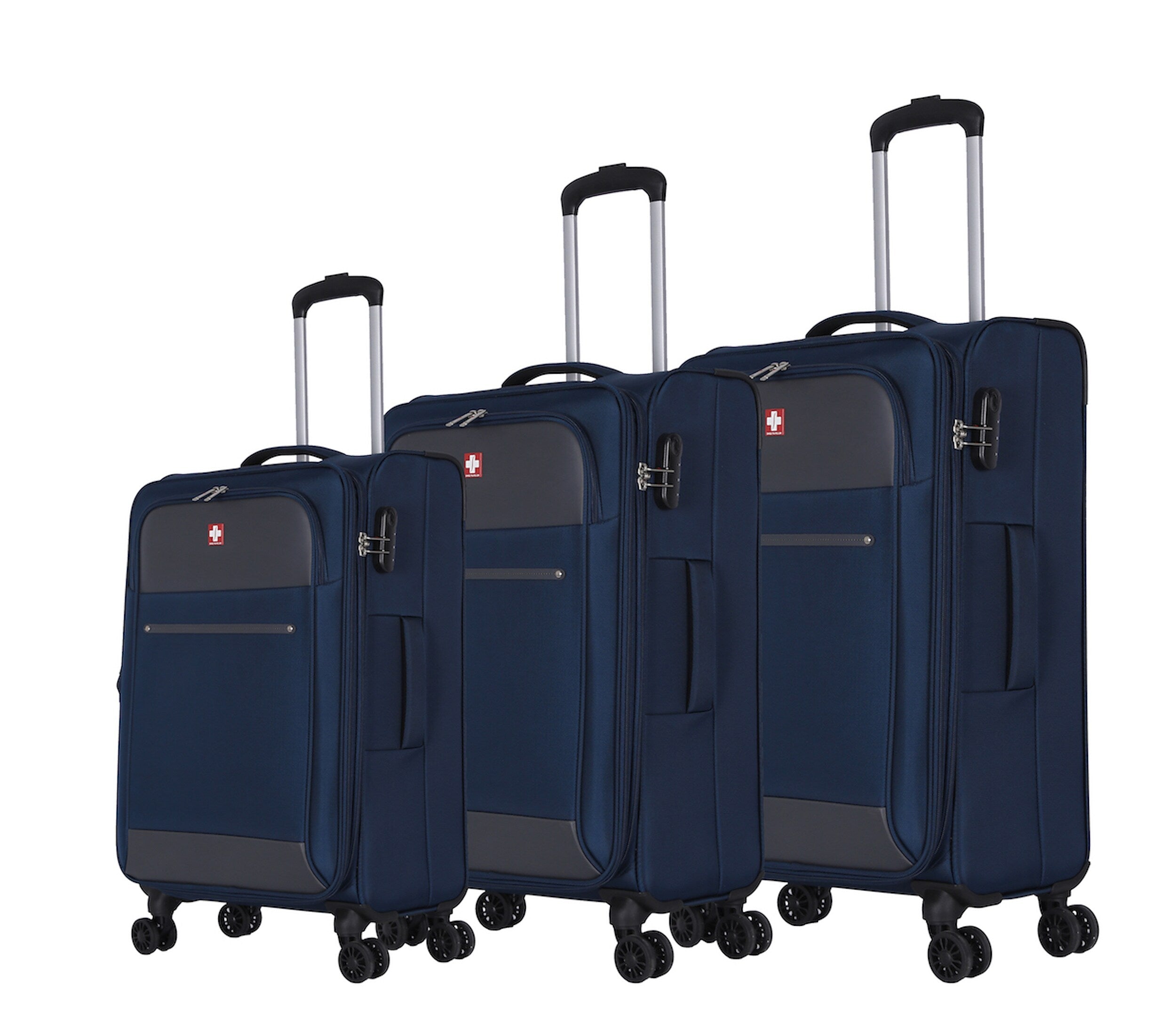 Swiss Traveller / Top Flight 3-Piece Luggage SetEngineered for the modern explorer, the Swiss Traveller Top Flight collection combines sleek European design with uncompromising functionality. This 3-piece luggage set includes carry-on, medium, and large suitcases — each crafted with lightweight yet impact-resistant materials to withstand the rigors of global travel.Featuring 360° smooth-glide spinner wheels, a telescopic handle system, and TSA-approved combination locks, Top Flight ensures security and effortless mobility wherever your journey takes you. Inside, enjoy fully lined interiors with compression straps, mesh pockets, and expansion zippers for extra packing space when you need it most.