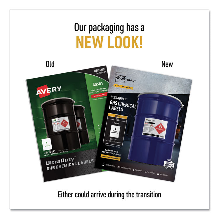 Ultraduty Ghs Chemical Waterproof And Uv Resistant Labels, 8.5 X 11, White, 50/box