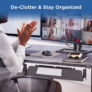 View Details- ERGONOMIC CLAMP ON KEYBOARD TRAY UNDER DESK: raise, tilt and slide keyboards to the perfect position with this adjustable keyboard tray. The under desk drawer slide out, tilts, and raises from 4.1-6.6"