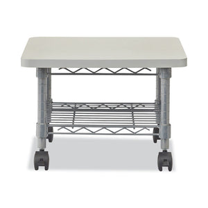 Maximize efficiency and keep your workspace organized with this versatile and compact printer stand, designed to accommodate most printers and fax machines with its spacious 19"w x 16"d surface. The sturdy steel wire shelf beneath provides convenient storage for extra paper, ink or office supplies, ensuring everything you need is within reach. Designed to fit neatly under most work surfaces, this stand helps save valuable floor space while keeping your office clutter-free. Built for durability and long-lasting use, the powder-coated steel frame resists scratches and wear, making it a reliable addition to any office or home workspace. For effortless mobility, the stand moves smoothly on four easy-glide casters, with two locking wheels to keep it securely in place when needed. Quick and easy to assemble with no tools required, this practical and space-saving printer stand is the perfect solution for a more organized and efficient office. Upgrade your workspace today!