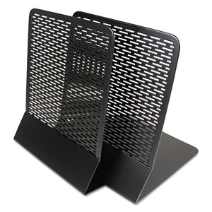 Urban Collection Punched Metal Bookends, Nonskid, 5.5 x 6.5 x 6.5, Perforated Steel, Black, 1 Pair