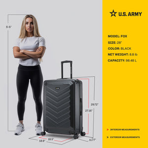 US Army FOX 28" Hardside Suitcase, 4-Wheeled Spinner, TSA Checkpoint Friendly, Black (USLFOX00L-BLK)