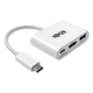USB 3.1 Gen 1 USB-C to HDMI 4K Adapter, USB-A/USB-C PD Charging Ports, 3", White