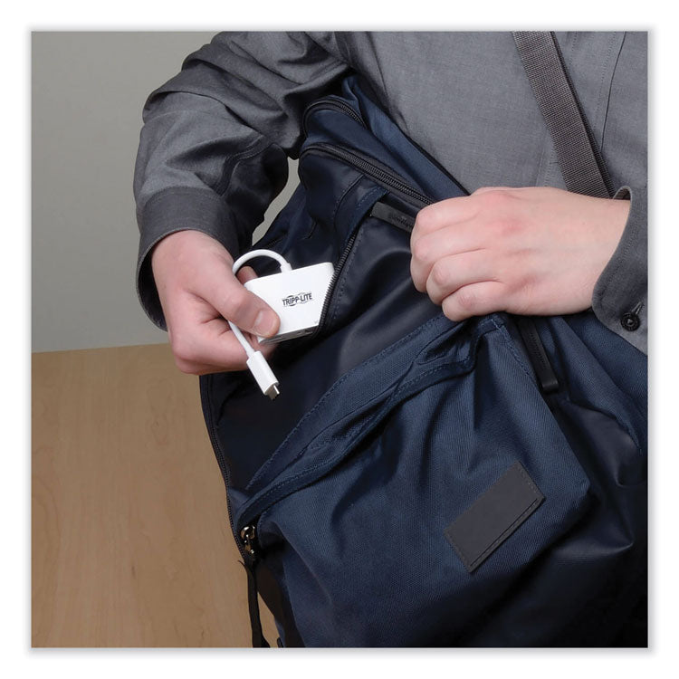 Expands the potential of your tablet, laptop, Chromebook, MacBook, smartphone or PC's USB-C or Thunderbolt 3 port. It's ideal for transmitting video to a large display and powering and charging a PD Charging-compliant mobile device—all at the same time. With a source device that also supports USB DisplayPort Alternate Mode, you can extend video from your primary display to another, duplicate the same video on both displays, or change the second display to your primary. Requires no software, drivers or external power. Connect the reversible USB-C plug to your source device's USB-C or Thunderbolt 3 port. The fumble-free USB-C plug connects in either direction to ensure fast, easy connection every time. The USB-C Power Delivery (PD) port provides power and charging to the PD Charging-compliant device (such as a MacBook or Chromebook) it is connected to. Connect the device's AC wall charger to the USB-C PD port, which supports power input up to 20V/3A (60W).