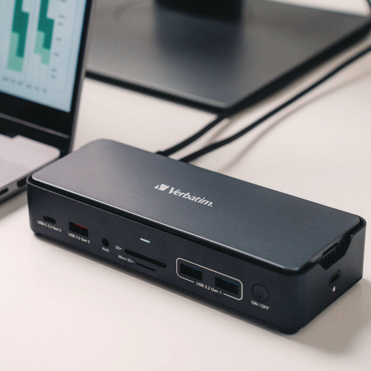 Rapid, uninterrupted file transfers are expected as this docking station utilizes 3.2 Gen 2 technologies and comes equipped with a RJ45 port that delivers a high-speed wired network connection. Our dock also has SD and microSD card reader slots to read and transfer files directly. An audio jack ensures you are able to connect your speakers and headsets for a simply dynamic workspace.