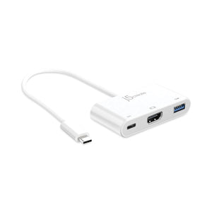 Connect video, data, and power to a computer or tablet with this USB-C to HDMI and USB 3.0 external video adapter. This j5create® USB-C to HDMI and USB 3.0 external video adapter can connect and disconnect without powering down and with a transfer rate of up to 5 Gbps, the cable enables bulky file backups.