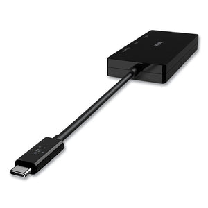 Connect your laptop or tablet to an HDMI, VGA, DisplayPort, or DVI video display with a convenient, four-port USB-C video adapter designed for simplicity of use. Crystal clear video resolutions are supported through a tethered USB-C cable, making this an ideal tool for work, classrooms, and on-the-go presentations.