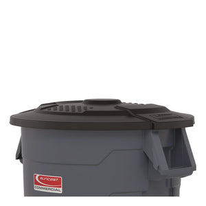 The Suncast Commercial® Utility Trash Can Lid, made of durable resin construction, is designed to fit on Suncast Commercial® utility trash cans. The lid securely fastens to the trash can with an easy snap-on design. This lid features tiers specifically made to avoid pooling of water, making this lid perfect for indoor or outdoor use!