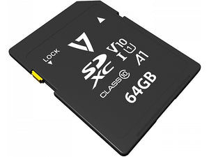 The new V7 64GB SDXC V10 U1 A1 CL10 4K UHD speed memory card is perfect for DSLRs and HD camcorders with their high capacities and high-speed data transfer rates to support 4K Full UHD videos. This easily transportable memory card is great for professional or personal use. The card features a 64GB capacity to fit your needs. Backed by a limited 5-year warranty, this reliable memory card provides peace of mind and freedom to transport your most precious data.