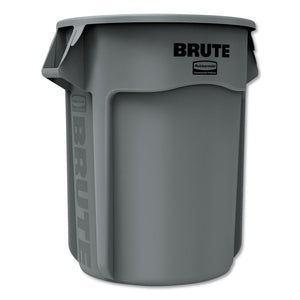 Vented Round Brute Container, 55 gal, Plastic, Gray