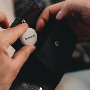 Our smaller tracking device works exclusively with Apple's Find My App. Simply attach My Finder to the item you want to track and use the Apple Find My App to locate it. When you are in close range of the Apple Find My ecosystem, you can locate your lost item by selecting "Play Sound" in the app, allowing you to follow the beep to your item. You can also select your item in the app and locate it on the map an anonymous, encrypted process to protect your privacy. With the app's Lost Mode, you can also enter your contact details in the event that your missing item is located by someone in the Apple Find My network. With smart notifications enabled on the device by default, you will receive an alert on your phone when your My Finder is out of Bluetooth range. Verbatim's My Finder is water-resistant, dustproof, and has up to 12 months battery power.