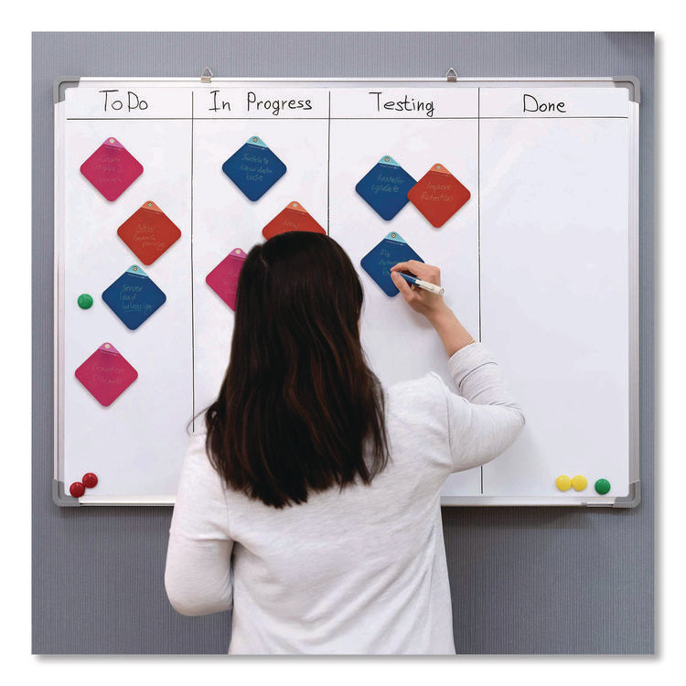 - Thin, flexible and reusable notes that stick to anything magnetic, including filing cabinets, metal frames, refridgerators, Kanban boards and more.