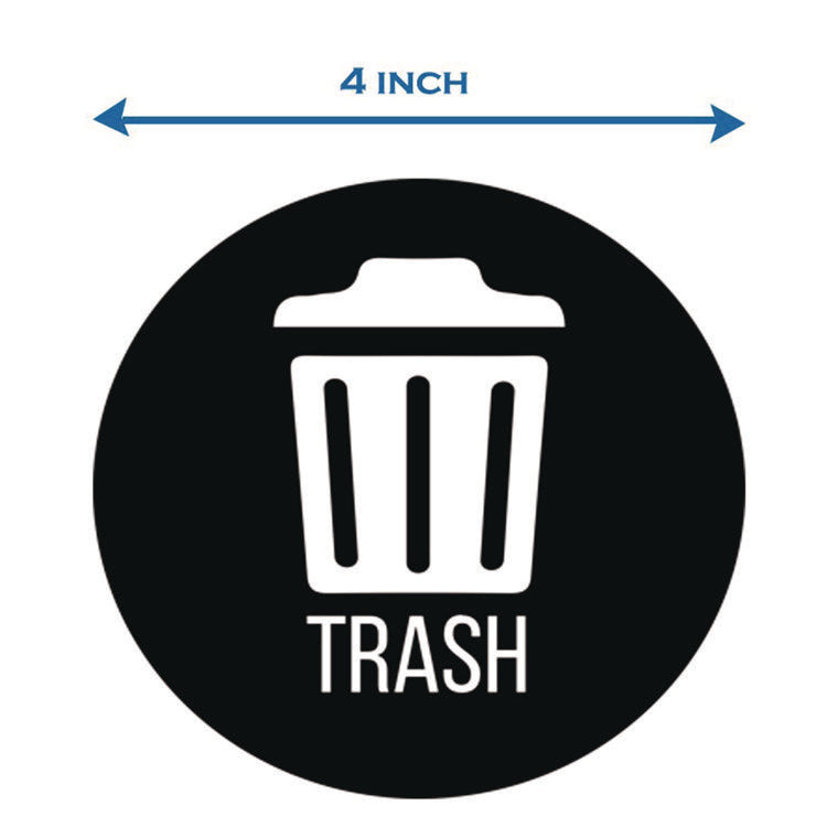 Vinyl Decals, Trash, 4" Diameter, Black/White, 3/Pack