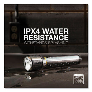 - Durable, aircraft-grade aluminum body with IPX4 water-resistant construction withstands splashing.