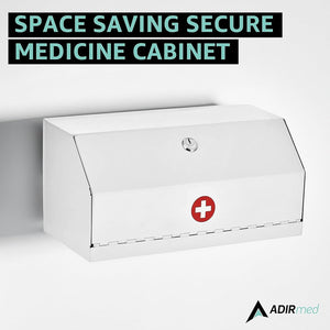 Made with all-steel construction, the Locking Steel Medicine Cabinet is durable and ensures daily rigorous use for a long time. The Medicine Cabinet has a smooth white powder coated finish that is easy-to-clean making it look new all the time. For optimal security, the Cabinet has a lock pre-installed that requires a key to access the variety of prescriptions, OTC and other medications inside. It can be opened lip up or down for added convenience and has mounting hardware that allows it to be installed to any bathroom, sick room or bedroom wall. The Medicine Cabinet is also great for storing passports, iPods, checkbooks and any other valuables.