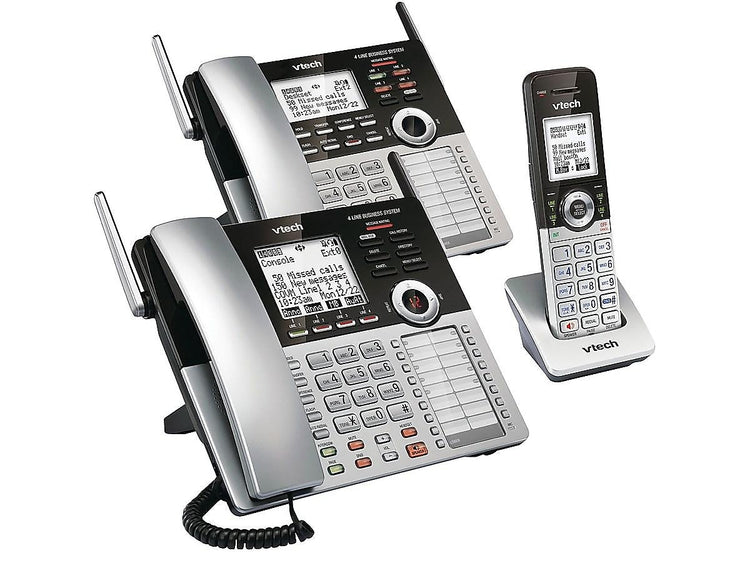 VTech Small Business 80-0327-00 4-Line Cordless Phone System, Silver/Black