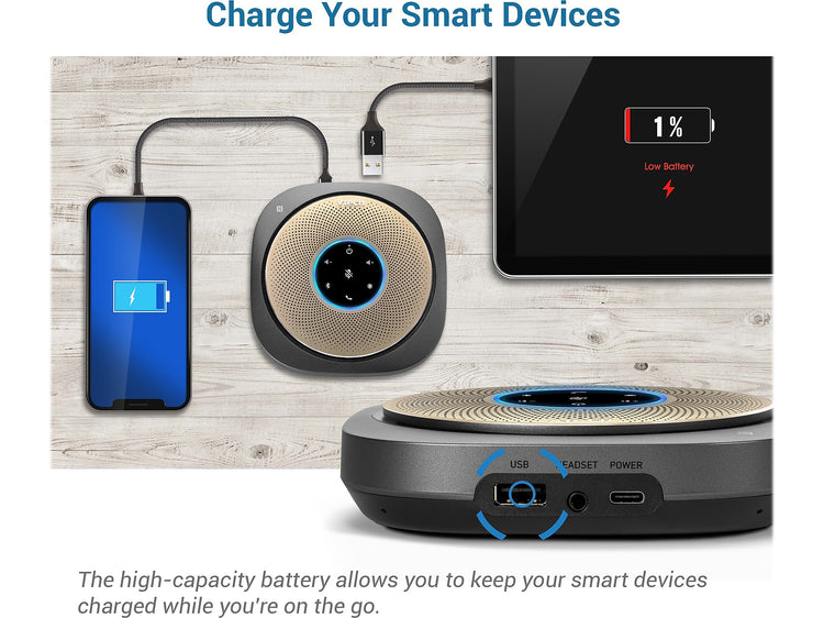 - Bluetooth conference speakerphone offers quick and easy connection to your smartphone, tablet, or laptop to meet your communication needs