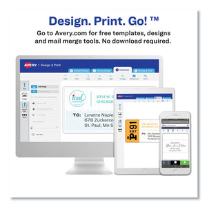 Remarkably reflective and elegant, Avery matte white rectangle labels with metallic gold borders bring a strikingly radiant shine to any event or project. Each rectangle label is pre-printed with a brilliant gold foil-like border that is guaranteed to capture people's attention. Avery Easy Peel technology makes it simple and easy to peel and place multiple labels quickly. Just bend back the label sheet to expose the pop up edges to peel away each label without risking ripping or tearing. Using a strong permanent adhesive, every label can stick and stay to a variety of surfaces including cardboard, envelopes, paper, glass, metal and more. Create beautiful designs and make your own address labels, wedding RSVP labels, party favor labels, product labels, food labels, holiday cards and more using the free design software and templates at avery.com/templates. Compatible with both laser and inkjet printers.