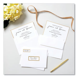 - Add an elegant touch to product packaging, business envelopes, wedding invitations, thank you cards, holiday cards, gift wrap, wedding favors and more with eye-catching matte white labels with metallic gold borders.