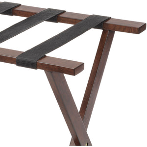 Traveling can be hectic, even when it's for pleasure, so simple things like an easy place for luggage to land create a sense of home away from home. From commercial to home hospitality, Whitmor luggage racks are designed to support suitcases in your family guest room, hotel, motel, resort, convention center, or Bed & Breakfast. The Whitmor Wood Folding Luggage Rack provides your guest with a dependable place to hold an open suitcase, keeping it off the bed, furniture, and floor. The solid rubberwood frame has a walnut finish and 4 wide canvas straps to support heavy suitcases. The wood design offers a more sophisticated style to elevate the decor of any room. This model arrives fully assembled and folds flat for quick and easy compact storage when not in use. Ensure a seamless experience for your guests today with Whitmor.