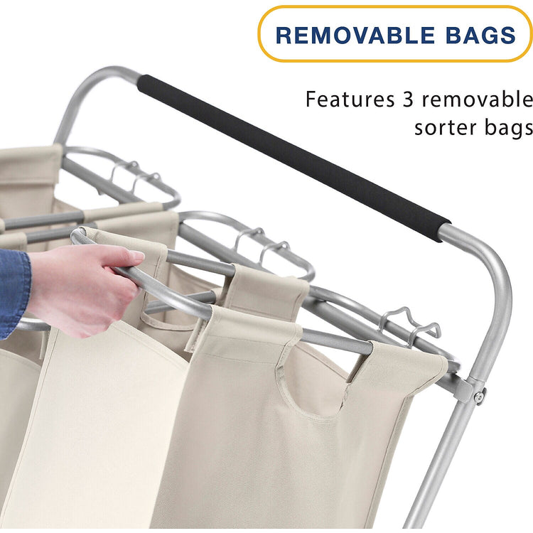 Whitmor 3-Section Rolling Laundry Sorter, Metal, (6640-4794)