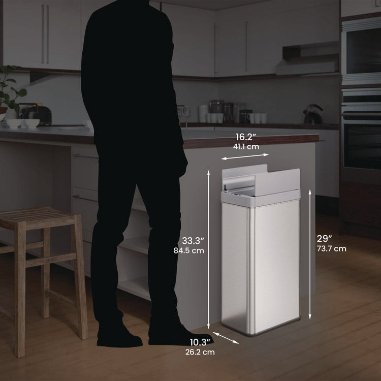 Wings Lid Sensor Trash Can, 18 gal, Plastic/Stainless Steel, Silver