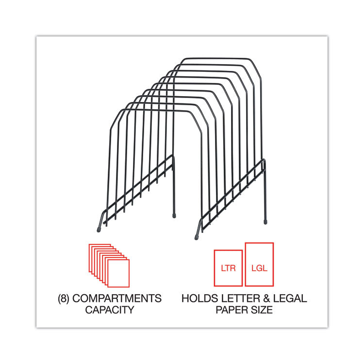 Wire Tiered File Sorter, 8 Sections, Letter To Legal Size Files, 8" X 10.5" X 12.5", Black