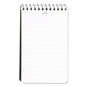 Top-bound with a spiral-wire binding and a sturdy cardboard cover, this handy pad folds back neatly for easy notetaking wherever inspiration strikes, whether it's while you're waiting in line or walking across town. High-quality, ruled paper takes any pencil or ink marks neatly and cleanly. Sized for easy portability, it's perfect for carrying along with you in your pocket, bag or purse. Single-hole punched for easy insertion in any binder or for hanging off any sort of ring or hook.