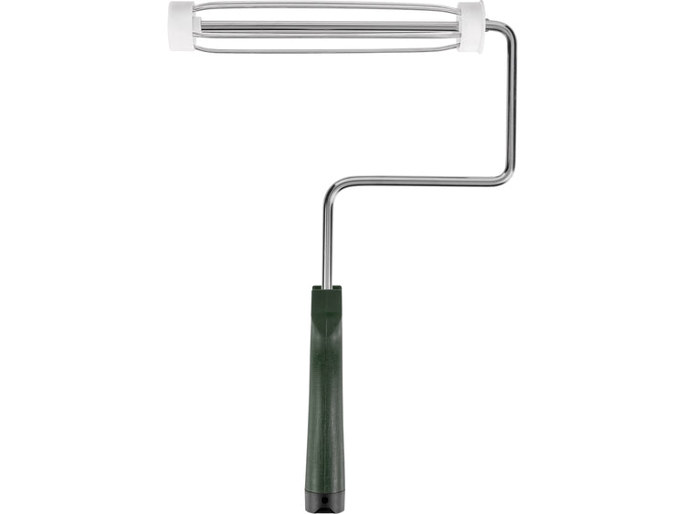 There are many reasons why Wooster Brush Magikage 90 is a best-selling professional frame. The quick-release spring prevents roller slippage yet allows for clean one-rap removal. Internal bearings keep the durable fiberglass-reinforced nylon cage spinning smoothly. This roller frame features a 0.31" chrome-plated shank with a popular 90-degree angle, sturdy five-wire cage, and nylon endcaps. The comfortable full-size polypropylene grip works perfectly with extension poles, including Sherlock GT.