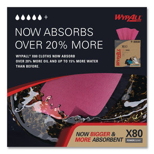 WypAll® is the number one brand of disposable wipes in the US and Canada. Maximize performance while minimizing time, effort and product waste. If you've been using industrial cloth towels, it's time to make the switch to WypAll® PowerClean™ X80 Cloths. These cloths feature innovations like high-tech Hydroknit® fast-absorbing material and are durable for scrubbing. WypAll® X80 cloths now absorb over 20% more oil and up to 15% more water than before. In addition, they now feature a tough, precision-engineered surface texture, making them even more effective for your cleaning tasks. The heavy-duty cloths are made of soft pulp fibers, bonded to a polypropylene base sheet for absorbency and durability, making them suitable for removing dirt, oil, grime and solvents in industrial and manufacturing businesses. The cloths are reusable and reinforced for strength when wet and dry. These bulk cloths are a great alternative – safer and more efficient – to replace laundered rental shop towels and cleaning towels. These premium industrial cleaning cloths can be used for heavy-duty machine and part wiping, wiping metal shavings, prepping surfaces with solvents, and cleaning rough surfaces. When you're running a business, it pays to use the very best supplies. For the toughest grease and grime, trust the performance and innovation of WypAll® PowerClean™ X80 Heavy Duty Cloths.