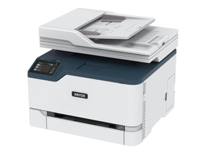 The affordable Xerox C235 Color Multifunction Printer is built for fast,nimble offices and home offices that need a color printer that can keep up with them. Easy to set up with Xerox Smart Start Software and ready to work hard right out of the box. This device was designed for high-demand print environments, with 2.4-inch color touchscreen user interface, 50-sheet automatic document feeder, automatic 2-Sided printing on letter and legal size paper with standard paper capacity of 250 sheets. Built-in wireless and Wi-Fi Direct functioN/Ality lets you print directly from mobile devices and tablets. Designed with a recommended monthly print volume of up to 1,500 pages per month, a 1 GHz dual core processor, 512 MB memory, and print speeds up to 24 Letter pages per minute/ 22 A4 pages per minute the C235 is a workhorse. Do more with optioN/Al Xerox Workflow Central, allowing you to convert documents into other languages, change handwriten messages into shareable text documents, create audio files of hardcopy to listen to on the go, automatically redact content, and convert scans into Microsoft Office Applications. Achieving EPEAT certification means the C235 meets comprehensive criteria for design, production, energy use, and recycling. And our Green World Alliance program offers hassle-free toner cartridge recycling.