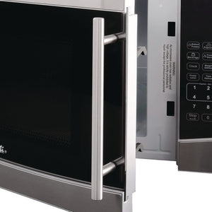Save counter space with this compact, 1,000 watt stainless steel microwave oven. Its compact footprint allows you to fit it into tight corners and onto cramped countertops, making it ideal for dorm rooms, offices, RVs, tiny homes or anywhere you might need to cook food fast. Electronic control panel features six one-touch cook settings (Baked Potato, Beverage, Frozen Dinner, Pizza, Popcorn and Reheat) for quick and easy operation. Standard cook by power level and time as well as defrost by weight and time functionality, along with a handy "Add 30-seconds" control round out your options. Removable glass turntable simplifies cleaning tasks.