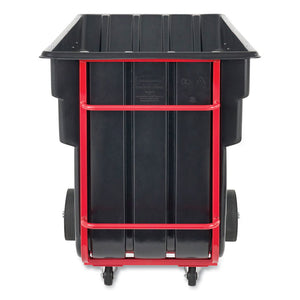 Rubbermaid Commercial Rotomolded Tilt Truck features industrial-strength construction and several use-convenience features to transport the heaviest loads easily and reliably. Constant force fulcrum design allows for controlled dumping by one person, and the DuraTilt™ steel frame allows the truck to stay stable while in the tilted position, making both the dumping and cleaning process easier than it would be with traditional metal frames. Seamless, one-piece molded-plastic body won't rust, dent, pit, chip or peel, making it a snap to clean and maintain. Center-mount, 5-inch swivel-back casters and inset, 12-inch blow-molded polypropylene wheels ensure easy maneuvering down hallways, through doorways and onto elevators, while they and the steel frame remain fully set back from the truck's body to minimize the potential for damaging walls, corners and anything or anyone that might be in the vicinity. Optional domed lids sold separately.