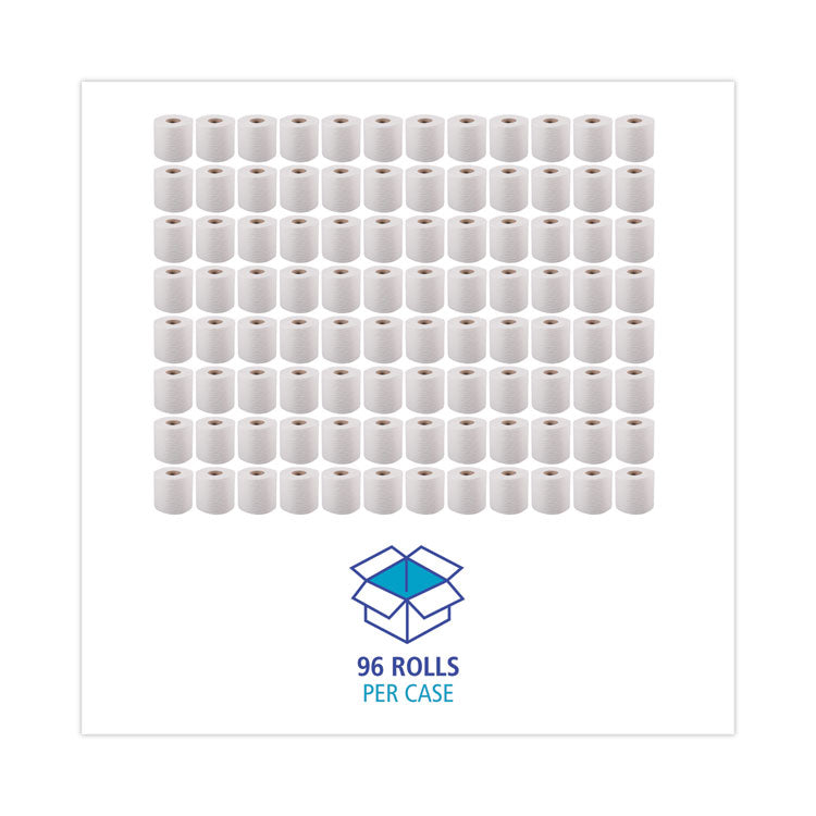 Boardwalk® One-Ply Toilet Tissue is soft and absorbent, embossed white paper bathroom tissue. Made with facial quality softness for a quality bathroom experience. One-ply with embossing for added absorbency. Ideal for high-traffic restrooms in for offices, schools, restaurants, healthcare, industrial, and retail settings. Dispensers sold separately. Safe for sewer and septic systems.