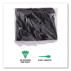 100% Recycled Content Cutlery, Spoon, Plastic, Black, 50/Pack, 20 Pack/Carton