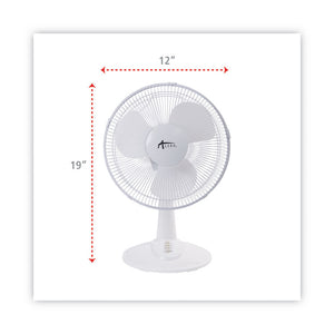 12" 3-Speed Oscillating Desk Fan, Plastic, White