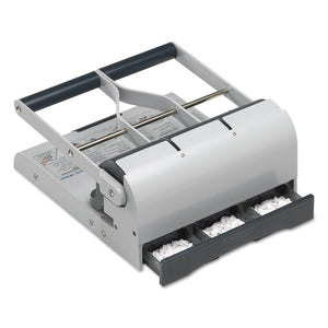 Sharp cutting, easy to use powerful manual punch. Features an ergonomic handle and finger guard. Specially engineered to make manual punching 30% easier than with comparable models. Impressive 160-sheet paper punch capacity; 2 or 3-holes. One-touch punch pad adjustment extends punch head life. Able to punch either 9/32" or 11/32" holes. Adjustable paper guide and removable chip tray. Protected with an antimicrobial application, which helps preserve the integrity of the product by preventing bacteria and mold growth on the product itself. Replacement punch kit (A7074872) in 9/32" size or (A7074874) in 11/32" size. 100% Performance Guarantee.