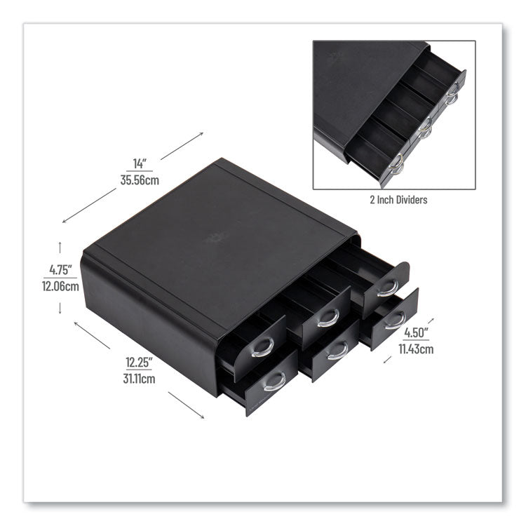 2-Tier 6-Drawer Single Serve Coffee Pod Drawer, 14 x 12.25 x 4.75, Black